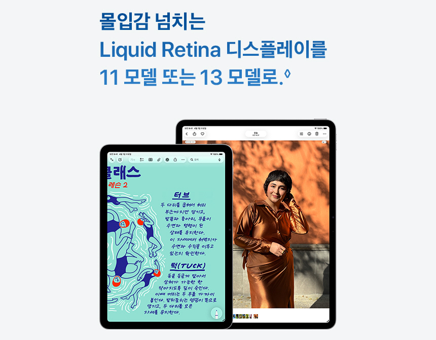 아이패드 에어 M4 모델은 11인치와 13인치 두 개의 모델 중 하나를 선택할 수가 있는데… 휴대성과 가격을 생각한다면 그래도 조금 더 부담이 없는 쪽은 11인치 모델이라고 생각한다. 애플이 자랑하는 리퀴드 레티나 디스플레이를 통해 높은 선명도와 해상도를 자랑하는 화면으로 영상 시청과 다양한 편집 활동을 할 수가 있다.