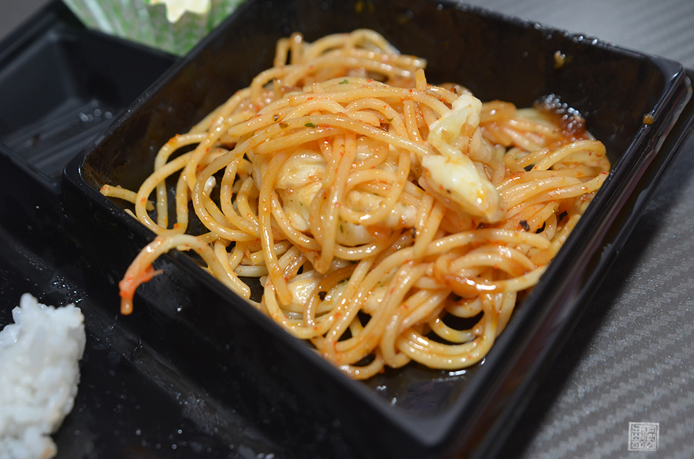 치킨 같은 경우에는 간장 소스 치킨이다 보니 살짝 짠 느낌이었다. 그리고 치킨과 함박 스테이크를 먹다 보니 그 아래에 스파게티도 들어가 있는 것을 알 수 있었다. 이 스파게티를 포함해서 한끼만족 함박치킨은 칼로리가 무려 1,002 칼로리였던 것이다. 나처럼 운동 부족인 사람들은 이 도시락은 거의 과식이다.