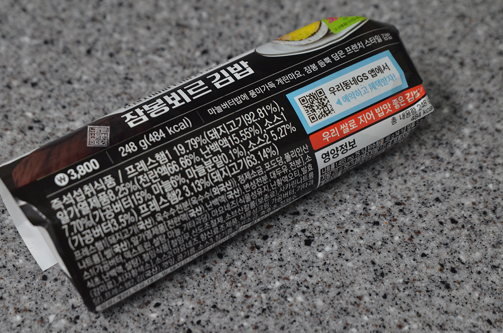 GS25 편의점에서 구매할 수 있는 프렌치파파 타미리 셰프의 잠봉뵈르 김밥의 가격은 3,800원으로 다른 김밥과 비교하면 가격이 조금 있는 편이기는 하다. 하지만 해당 김밥은 248g(484 칼로리)를 가지고 있어서 간편하게 한 끼로 먹는 데에 부족하지 않았다. 오히려 나는 이 김밥을 저녁이 아니라 아침으로 먹었는데… 포만감이 상당했다.