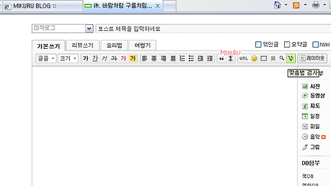 티스토리 사용하면서 이런 것이 꼭 있으면 좋겠다고 느끼는 것이 있는데요... 우선은, 누구나 다 그렇겠지만 "서로이웃추가"기능이 아닐까 하네요. 링크추가로 추가는 해둘 수 있지만서도, 그게 기능의 전부가 되버리니까요.... 모르는 블로거끼리 소통을 하기 위해선 메타 블로그를 사용할 수 밖에 없으니까요. 다음으론, "맞춤법검사"기능 입니다. 사실 저처럼 장문으로 글을 쓰시는 블로거(만화를 제외하면 말이지요..) 분들이 많은데요... 자신이 쓰고 읽으면서 오타를 찾아내는 데에도 무의식적으로 지나치는 부분이 많습니다. 그러기에 맞춤법검사 같은 기능이 있으면 참 편리할 것 같군요... 예를 들면, 이렇게 말이지요 음... 최소 이 두가지라도 조금 더 활성화된다면 정말 편리할 것 같습니다. 아마 반응도 좋으리라 ..