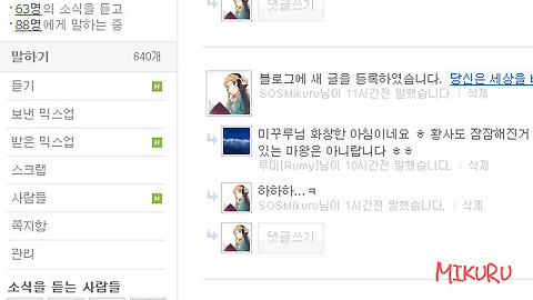 보통 모르는 사람과 관계를 가지기가 보통 어려운게 아니지요... 서먹서먹하고 쉽사리 말도 안나오니까요. 하지만, 인터넷에서는 그 제약이 훨씬 덜 한 것 같습니다.ㅋ 가상이라서 그런걸까요.... 제가 블로그를 하면서 가장 좋은 것은 바로 "모르는 사람들과의 소통" 입니다. 그 모르는 사람들로부터 여러가지 제가 몰랐던 분야에 대해서도 자세히 알 수 있기도 하고, 자신과 생각이 비슷한 사람 아니면 전혀 반대인 사람들을 만나면서 저를 더욱 발전시킬 수 있는 계기가 되었습니다. 어느새 저와 관계를 맺은 분이 이렇게 늘어났습니다... 뭐 아직 제가 완전히 다 소통을 하는 것도 아니고 조금 밖에 모르는게 문제입니다만....더 노력해야겠지요 ㅎ 그리고, 블로그 뿐만 아니라 다른 사람들과 손쉽게 소통할 수 있는 것들이 ..