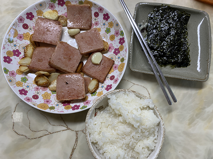한 끼 식사에 한 개의 스팸이라는 사치를 부릴 수 있는 여섯 번의 기회.