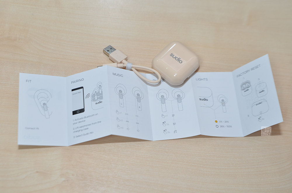 포장도 군더더기 없이 깔끔하게 잘 포장되어 있는 걸 한눈에 알 수 있다. 수디오 니오는 해당 수디오 이어폰 케이스에 함께 동봉되어 있고, 아래에 있는 액세서리(Accessories)라고 적힌 박스에 충전 케이블과 함께 설명서 등이 들어가 있으니 하나하나 다 열어보기 바란다. 그리고 제품을 사용하기 전에 설명서를 읽는 건 필수다.