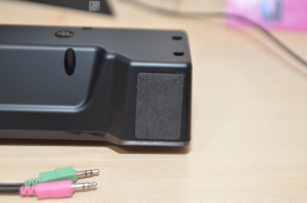 디자인도 예쁘게 잘 되어 있고, 바닥에는 고무판이 붙어 있기 때문에 미끌리는 일 없이 딱 정확히 놓은 자리에 고정할 수 있었다. 추가로 동봉되어 있는 고무 받침대는 모니터 받침대(지지대)의 상태에 따라 스피커 다리의 높이를 사운드바의 자리를 높여서 장식하기 위한 용도로 사용하는 것 같았다.