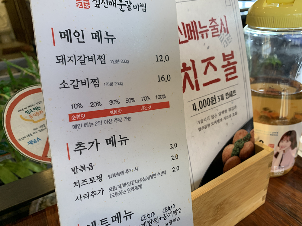 돼지갈비찜의 맵기 정도는 순한맛, 보통맛, 매운맛으로 조정이 가능하다. 나와 어머니는 보통맛을 주문해서 먹었는데 크게 뭔가 맵다는 느낌이 없었다. 일반적으로 사람들은 맵기의 정도를 '신 라면 정도로 맵다'라고 한다면 매운맛이라고 생각하는 경우가 많은데, 아마 그건 70% 매운맛으로 해야 하지 않을까 싶다.
