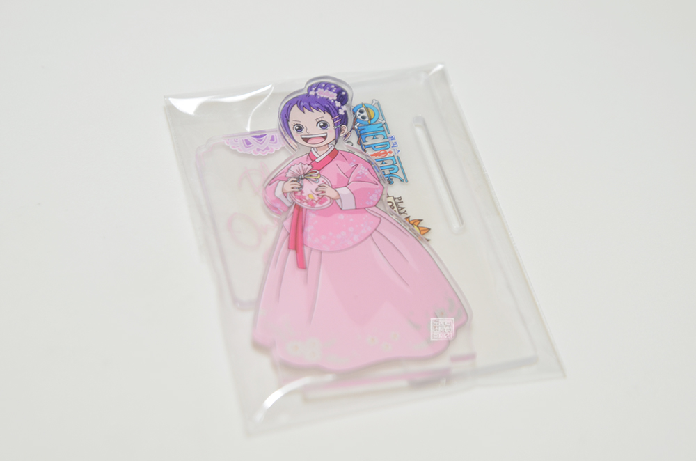 내가 구매한 굿즈는 캐릭터 아크릴 스탠드 두 개, 나미 일러스트 카드 두 장을 포함해 총 네 개의 굿즈를 구매했다. 사진에서 볼 수 있는 에이스 현상 수배 전단지와 악마의 열매가 그려진 아크릴 스탠드는 Play ONE PIECE에서 1만 원 이상 구매할 경우 돌릴 수 있는 룰렛 이벤트를 통해 받아볼 수 있었던 사은품이었다.