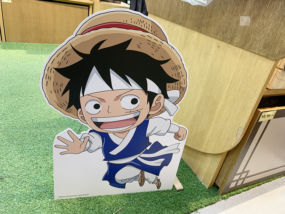 그리고 Play ONE PIECE 매장을 둘러보면 한국 한정판이라고 해서 우리에게 익숙한 복장을 입고 있는 <원피스> 캐릭터 패널을 만날 수 있다. 이 패널이 놓여 있는 곳을 본다면 엽서 카드 형태로 판매되는 일러스트 카드를 확인할 수 있는데, 이게 또 원피스 한국 한정판으로 그려진 일러스트이기 때문에 여러모로 마음에 들었다.