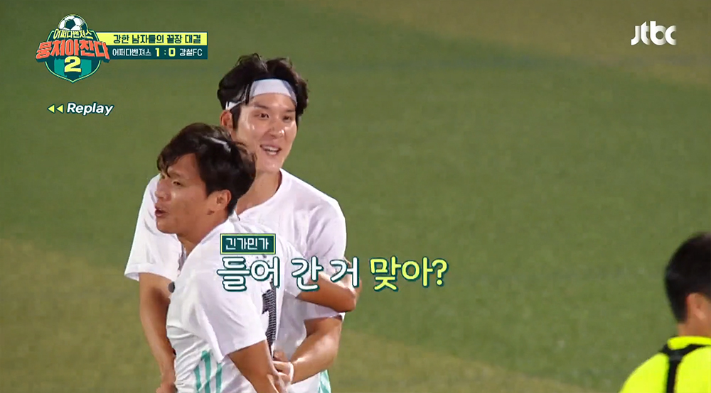 강철FC의 거센 압박 속에서 볼 점유율이 밀리고 있던 <뭉쳐야 찬다 시즌2> 멤버들이었지만, 절대 무너지지 않는 조직력으로 맞서면서 젊은 피들을 위주로 공격을 잘 이끌어 나갔다. 어렵게 진행된 공격 속에서 한 번의 기회를 놓치지 않고 골을 터뜨린 인물은 바로 마린보이에서 사커보이로 전향한 박태환이었다.