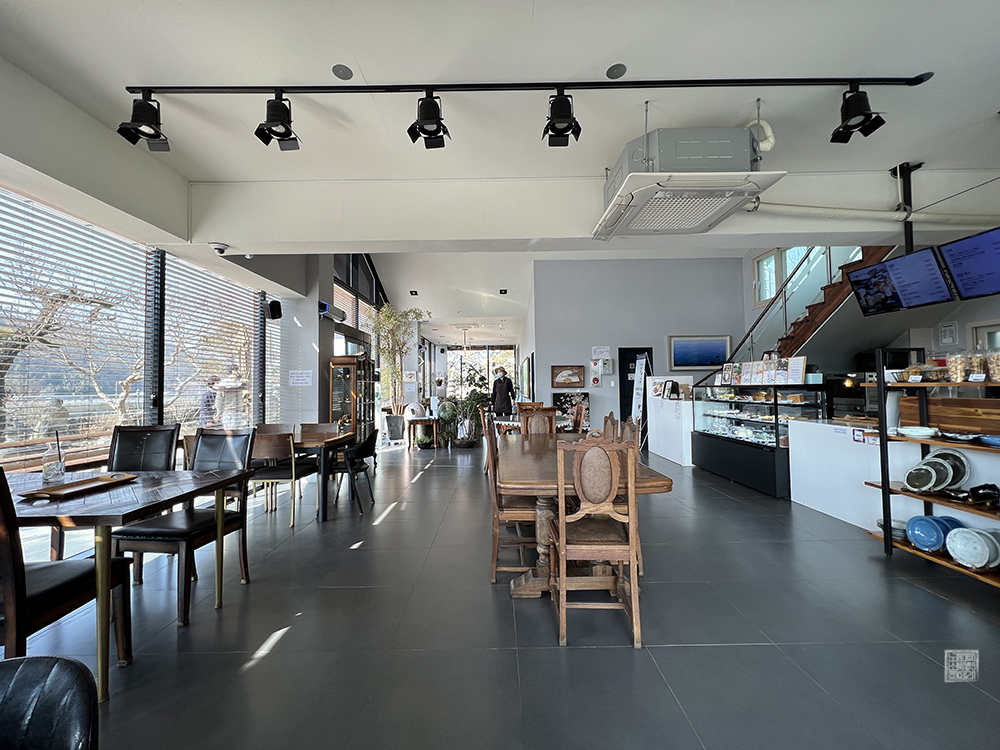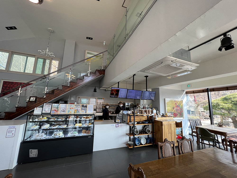 카페 건물 내부는 총 2층으로 이루어져 있는데, 1층도 제법 넓어서 굳이 2층에 올라갈 필요가 없었다. 물론, 2층에 올라간다면 바깥의 정원을 한눈에 바라볼 수 있는 창이 있기 때문에 한번 올라가 보는 것도 좋았을 텐데 당시에는 그 생각을 하지 못했다. 왜냐하면, 1층에서도 창을 통해 바깥 정원을 충분히 감상할 수 있었기 때문이다.