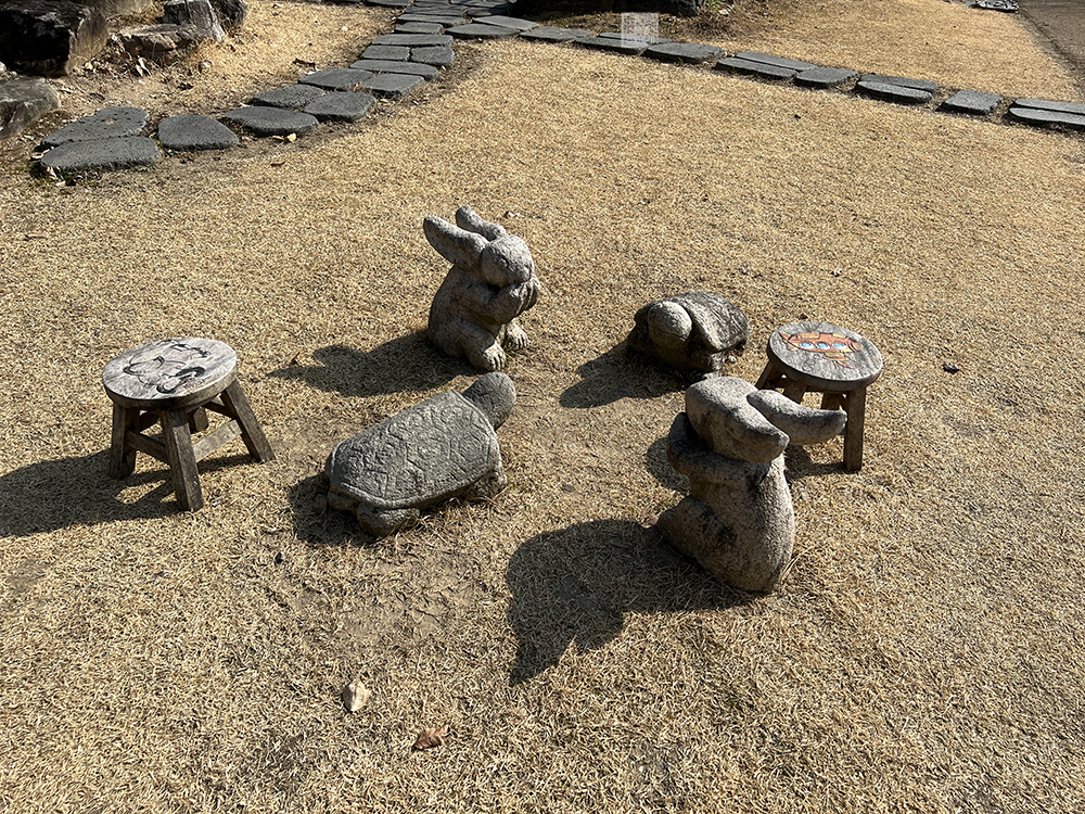 정원에는 단순히 임의로 만들어 놓는 테이블만 아니라 바위를 올려서 만든 테이블을 비롯해 다양한 조각상이 각자 자리를 잡고 있었다. 앙증맞게 만들어진 조각상이 있을 뿐만 아니라 문득 어디서 본 것 같은 느낌의 조각상도 많아서 커피와 소나무를 이용할 때는 단순히 음료를 마시는 것만이 아니라 산책을 하는 즐거움도 있다고 생각한다.