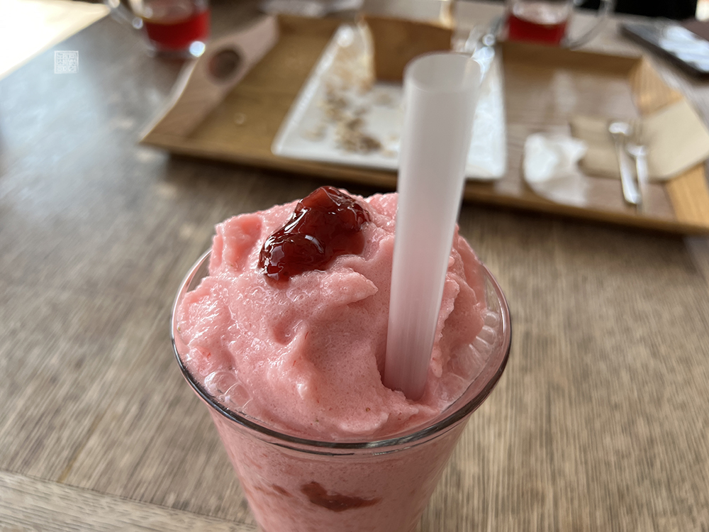 식사류를 판매한다고 해도 역시 카페다 보니까 식사류보다는 카페에 걸맞은 메뉴를 주문해서 먹는 게 최선이지 않을까 싶다. 나는 당시에 수제 돈까스를 다 먹은 이후에 마실 게 물밖에 없다 보니 어머니와 이모가 자몽차를 마시는 동안 그냥 있기도 그래서 딸기 요거트 스무디를 한 개 주문해서 마시기로 했다.