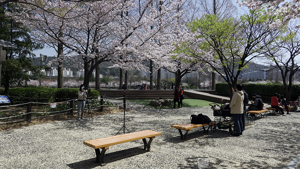 김해 연지공원을 천천히 걷다 보면 그렇게 함께 온 사람들은 서로의 사진을 찍어주거나 벚꽃 아래를 천천히 걸으며 이야기를 나누는 모습을 쉽게 볼 수 있었다. 그리고 한쪽에서는 유튜브로 노래 영상을 찍어서 올리는 것 같은 분이 카메라를 설치해두고 벚나무 아래에서 노래를 부르고 있는 모습도 볼 수 있었다. 이것이야 말로 봄의 낭만?