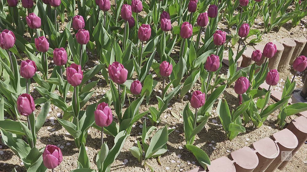 ▲ 앉아서 잠시 쉴 수 있는 곳에는 튤립이 피어있다