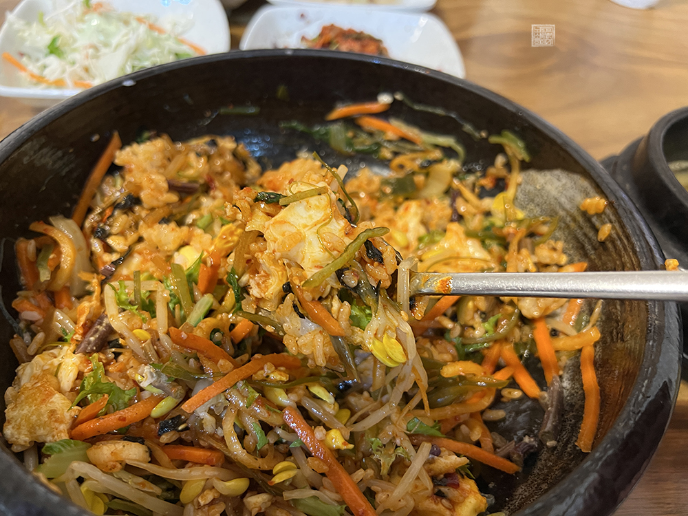 바로, 비빔밥에 올려지는 계란 프라이가 늘 너무 다 익어서 온다는 점이다. 이게 사람마다 호불호가 살짝 나누어질 수도 있는 부분이기는 한데, 나는 비빔밥처럼 밥을 비벼서 먹을 때 계란 프라이를 올릴 경우 항상 반숙으로 해서 비벼 먹는 것을 좋아한다. 비빔밥도 그렇게 먹어야 더 맛있는데… 이곳의 계란 프라이는 그렇지 않았다.