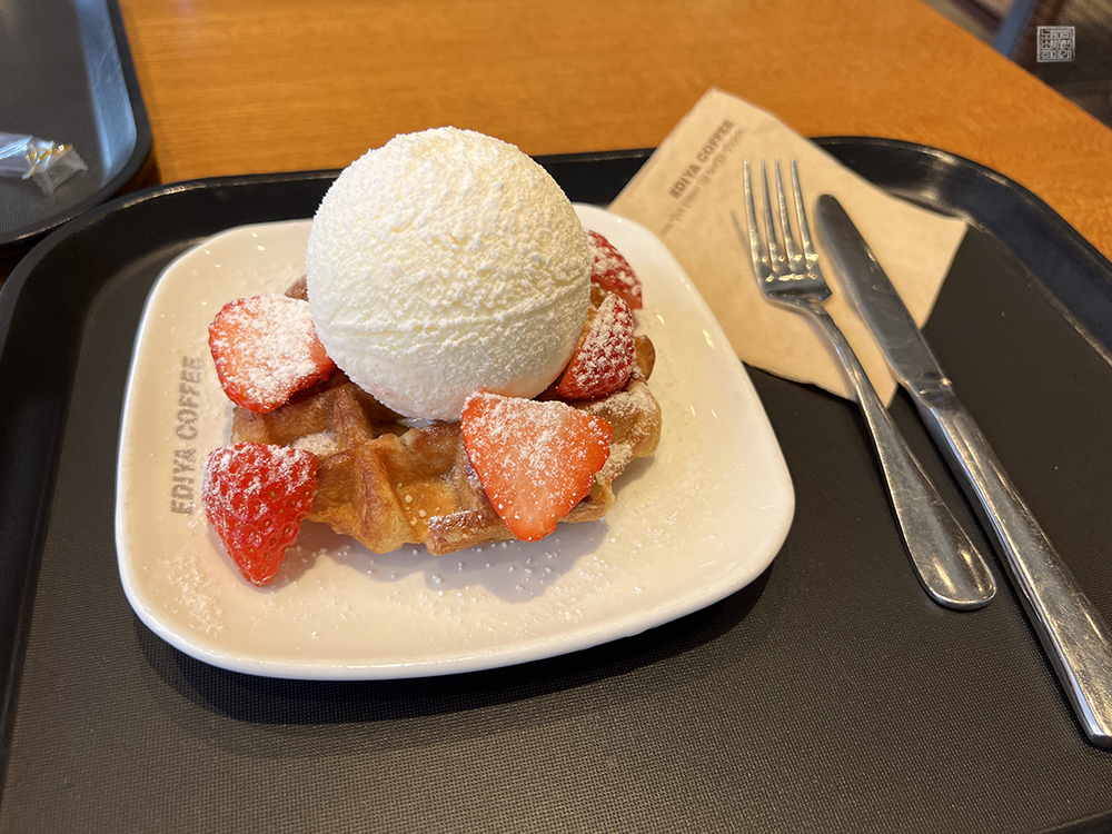 역시 이런 카페에서 취급하는 딸기는 냉동 상태로 얼려두거나 혹은 냉장고에서 살짝 아슬아슬할 때까지 두는 경우가 많아 극과 극으로 나누어지는 것 같다. 다른 지점은 어떤지 모르지만, 내가 먹은 곳에서는 딸기의 맛과 상태가 살짝 아쉬웠다고 생각한다. 그래도 와플과 아이스크림이 함께 있어 생딸기 와플 전체로는 맛있게 먹을 수 있었다.