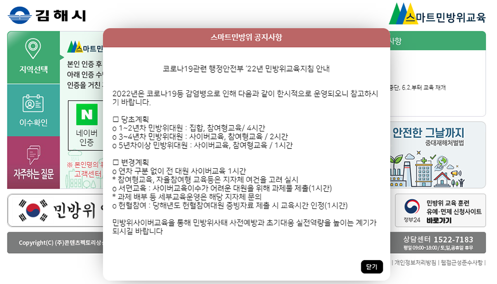 스마트 민방위 사이버 교육 수강 방법 및 후기