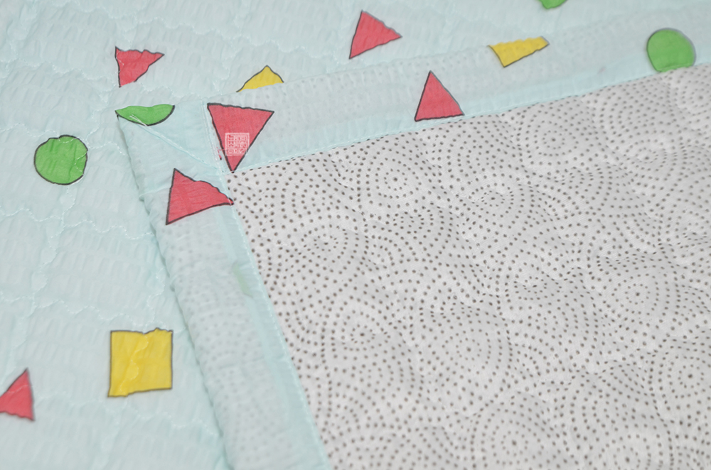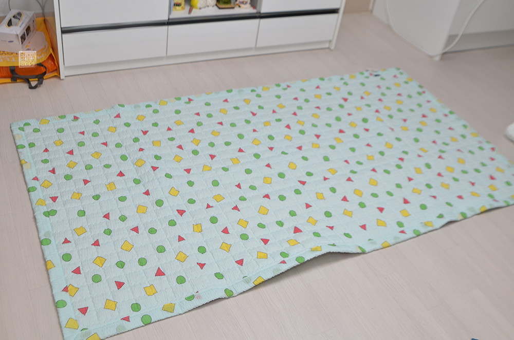 이불 패드는 뒷면에 미끄럼 방지 도트 원단이 사용되어 있기 때문에 나처럼 바닥에서 사용하더라도 이불이 크게 미끄러지는 일은 없었다. 괜스레 힘을 주어서 이불을 옮기지 않는 이상 처음 패드를 깐 곳에서 패드가 딱히 움직이지는 않았는데, 마감 처리도 잘 되어 있는 데다가 무엇보다 사용된 패턴 무늬가 짱구 잠옷이다 보니 무척 마음에 들었다.