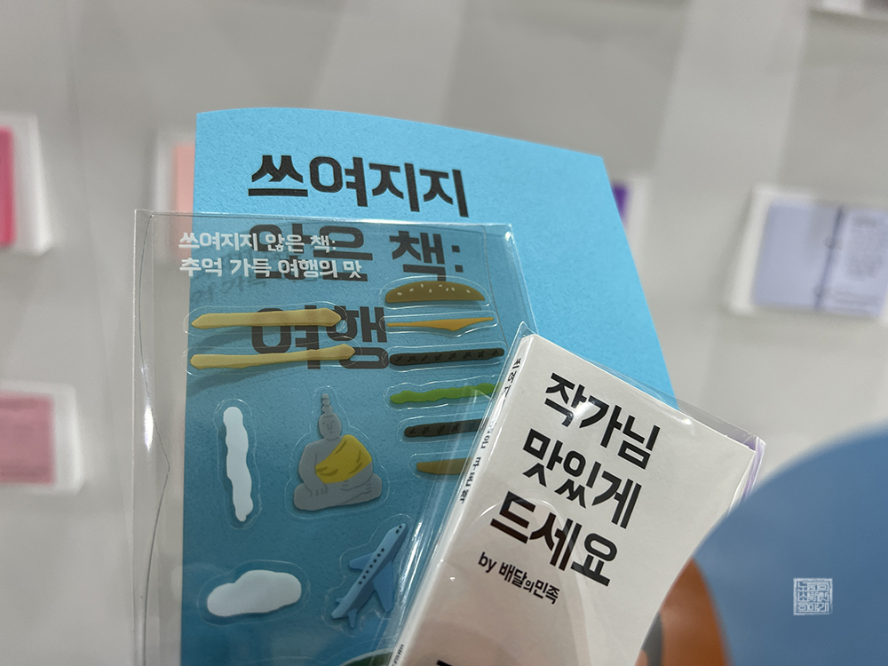 전시관 한쪽에는 제법 큰 규모로 부스를 만들어 놓은 배달의 민족 부스가 자리잡고 있다. 도서전에 왜 배달의 민족 부스가 있는 건지 의아했는데, 해당 부스에서는 직접 특정 키워드를 주제로 글을 써볼 수 있는 공간이 마련되어 있었다. 이곳에서 글을 쓴 이후 제출을 한다면 배달의 민족에서 사용할 수 있는 할인 쿠폰을 받을 수 있다.