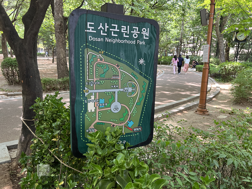 당시 나는 근처에 있는 돈가스집을 찾았다가 상당히 대기를 해야 했던 탓에 '주변에 공원이 있던 것 같은데 거기서 잠시 쉬어 볼까?'라는 생각으로 공원의 입구를 찾았다. 그렇다 보니 정문이 아니라 도산공원 동문으로 공원에 발을 들일 수 있었는데, 처음 마주할 수 있었던 공원은 서울 압구정로 한복판에 이런 정원이 있어 무척 신기했다.