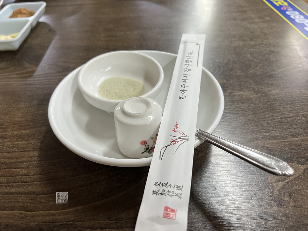 삼계탕에 소금을 넣어서 개인 입맛에 맞추기 전에 먼저 열심히 삼계탕 내부에 들어가 있는 닭에서 뼈를 발라주는 것을 추천한다. 당시 사진을 찍을 때 뼈를 열심히 바른 모습을 찍는 것을 깜빡 잊고 말았는데, 역시 순살 치킨만 먹다가 뼈가 있는 닭고기에서 일일이 뼈를 고르는 일이 무척 힘들었다. 세상에 왜 순살 삼계탕은 없는 걸까? (웃음)