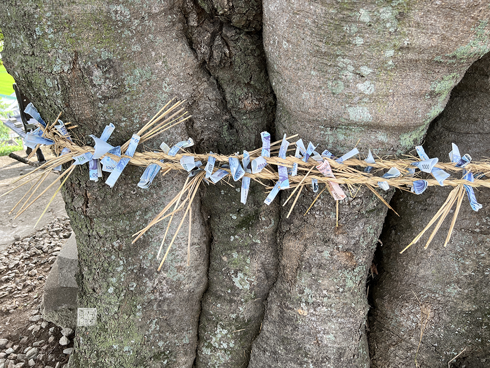 마을 사람들 사이에서는 수호 나무인 동시에 소원을 이루어주는 소원나무로 자리를 잡고 있던 나무이다 보니 일부 관광객들이 나무를 둘러싼 매듭에 돈을 묶어놓은 모습을 볼 수 있었다. 요즘 한국은 이전과 달리 5만 원짜리 등이 있으면 누군가 훔쳐가는 게 당연해졌기 때문에 매듭이 지어진 지폐는 대체로 천 원 지폐가 많았다.