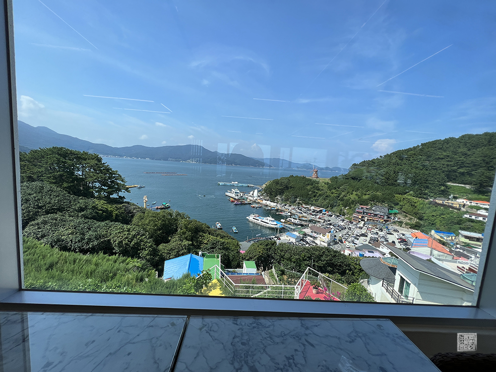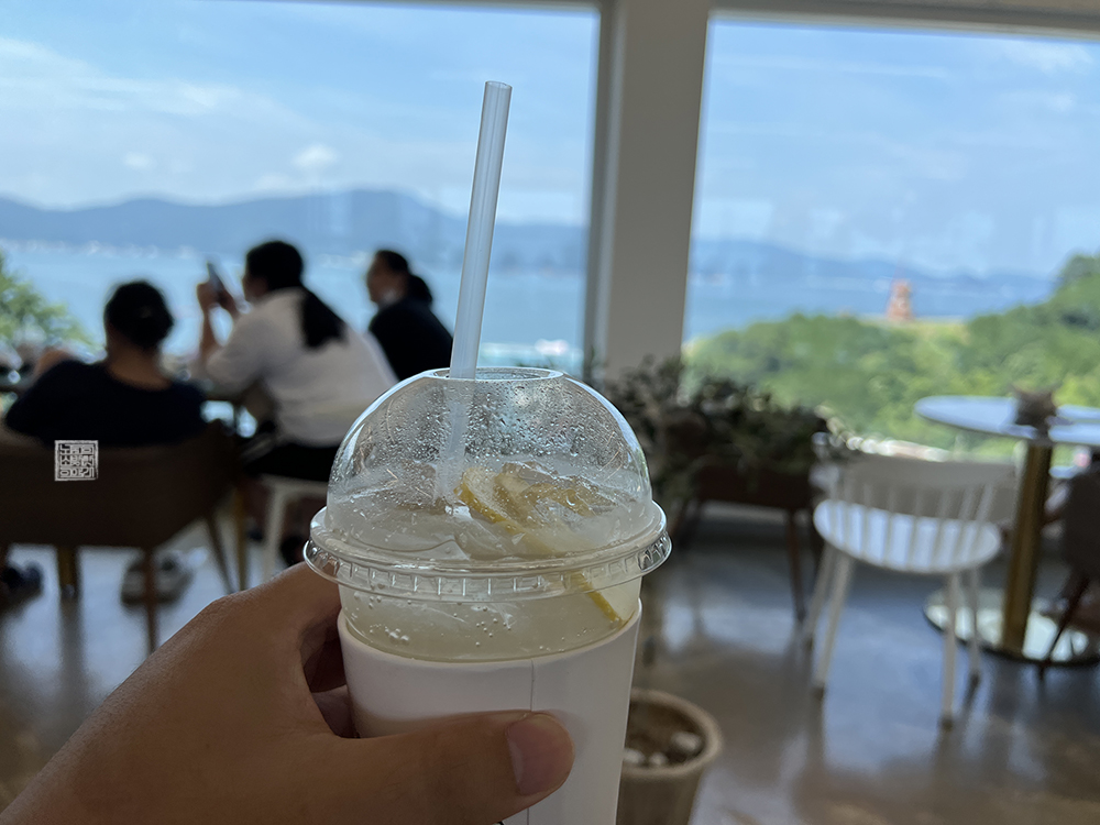 시원한 에어컨 바람이 나오는 카페에서 주문한 7,500원짜리 레몬에이드를 마시면서 바라보는 풍경은 돈이 아깝지 않았다. 가을이라면 이야기가 다를 수도 있겠지만, 조금만 걸어도 땀이 뻘뻘 흐르는 한여름에 열심히 바람의 언덕으로 가는 산책로를 걸은 이후 카페에서 시원한 레몬에이드를 마시며 창을 바라보는 시간은 너무나 달콤했다.
