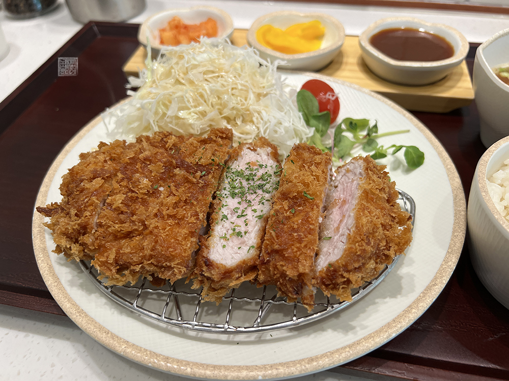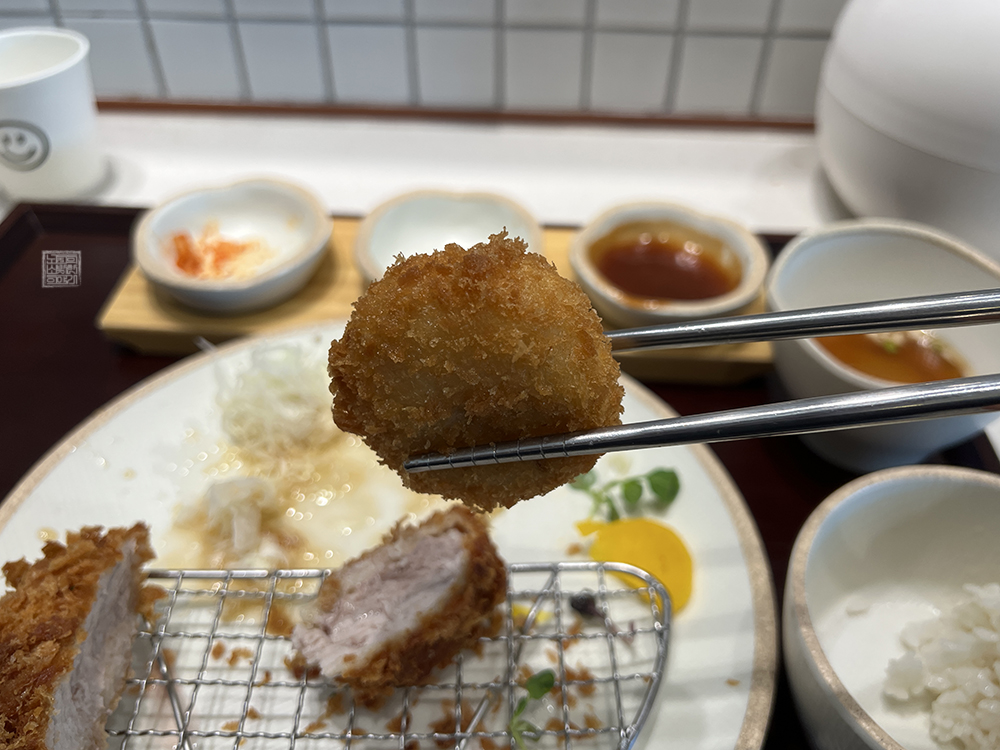 고기도 잘 익어 있는 데다가 육즙도 충분히 있어 퍼석퍼석한 느낌이 없었고, 튀김도 바삭해서 평소 1만 원이 넘어가지 않는 가격에 만족할 수 있는 일식 돈가스를 찾는 사람에게 추천이 아깝지 않았다. 이 기본 돈가스를 베이스로 해서 체다 크림 치즈를 뿌리면 체다 크림치즈 돈가스가 되고, 매운 소스를 뿌리면 매운 돈가스가 되는 듯했다.