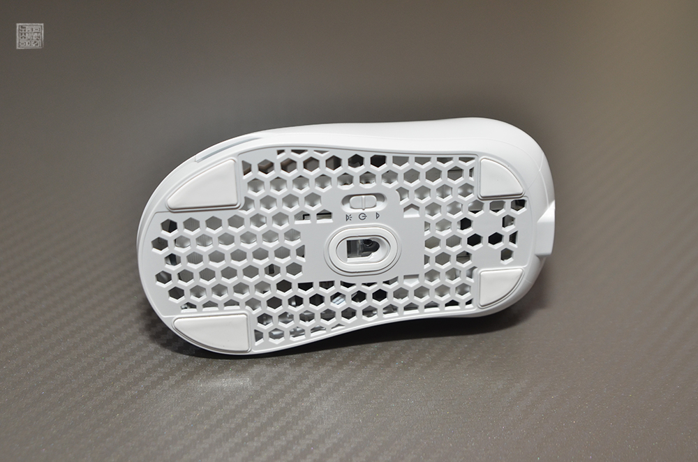 마우스 하단을 본다면 전원을 켜고 끌 수 있는 버튼이 있다. 가운데에 있을 때가 '중립'이 아니라 전원을 끈 상태이고, 아래쪽으로 했을 때는 마우스에서 LED 불빛이 나는 상태로 전원을 켠 상태, 위쪽으로 했을 때는 LED 불빛이 나지 않는 상태로 전원을 켠 상태가 유지된다. 평소 마우스 LED 불빛을 조절하고 싶은 사람에게 딱 좋았다.