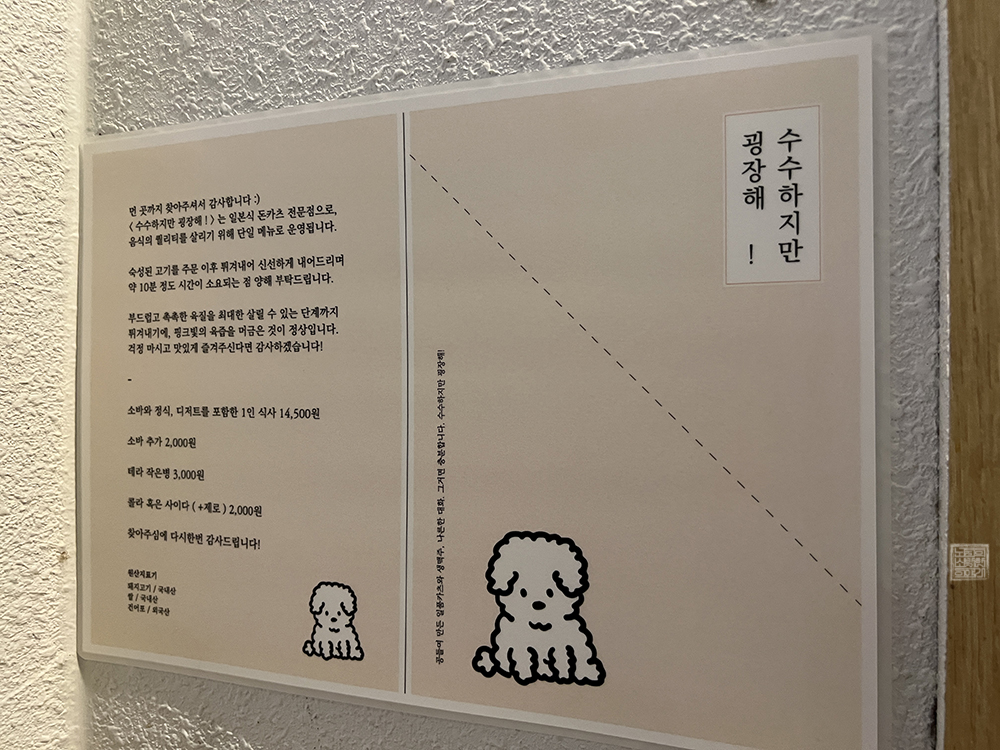 나도 소설과 드라마를 재미있게 보았기 때문에 '혹시 사장님도 팬이신가?'라며 해운대 해리단길 인근에 있는 돈가스 맛집 <수수하지만 굉장해!>를 찾아 발걸음을 옮겼다.