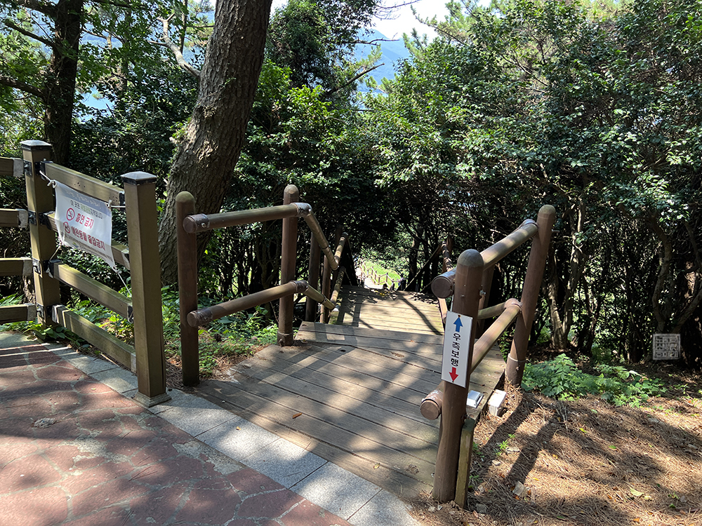 그리고 거제도 바람의 언덕에서 넓게 펼쳐진 바다를 보는 동시에 항구 마을 도장포 마을을 바라보면 바다 쪽을 향해 다리가 놓인 곳을 볼 수 있다. 이곳은 해안가에 모래가 있는 게 아니라 마을이 자리를 잡고 있다 보니 바다를 바로 앞에서 볼 수 없다는 단점이 있는데, 그 단점을 보완해서 바다 쪽을 향해 작은 다리와 쉼터가 마련되어 있다.