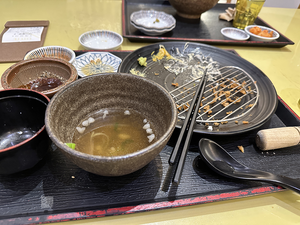 부엉이 돈카츠는 돈가스 소스를 깨를 갈아서 함께 찍어 먹을 수도 있고, 돈가스가 담긴 그릇에 고추냉이와 녹차 소금, 겨자가 함께 놓여 있어 취향에 따라 다르게 돈가스를 먹을 수 있었다. 그리고 돈가스도 등심으로 주문한 덕분에 평소 로스가스를 좋아하는 사람이라면 무조건 맛있게 먹을 수밖에 없는 겉바속촉이 제대로 갖추어져 있었다.