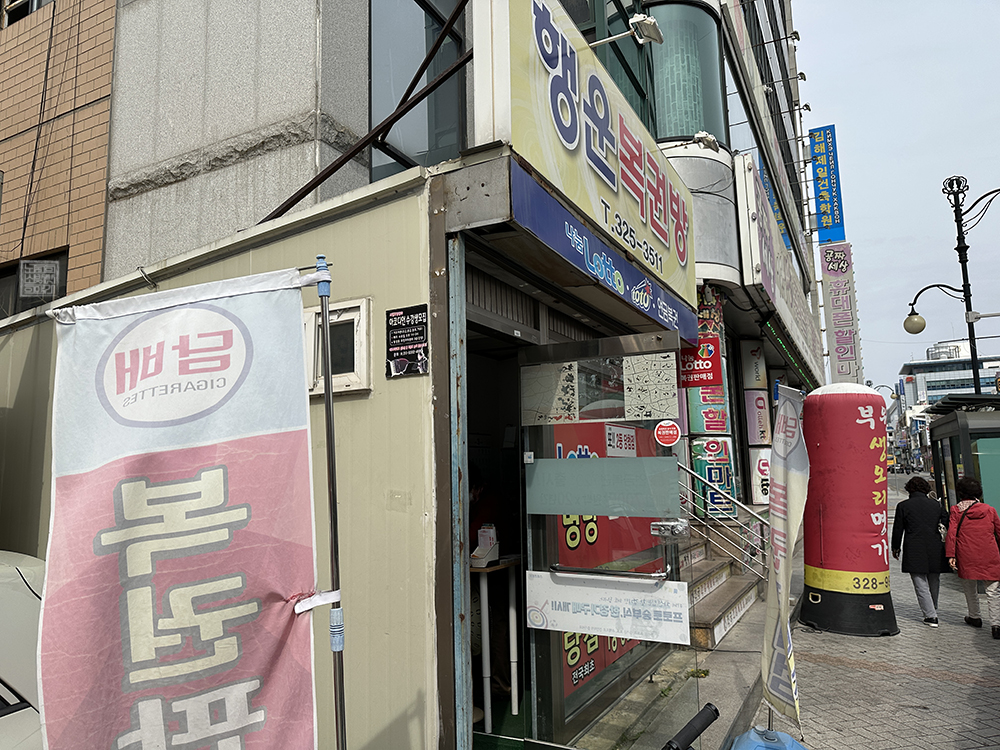 해당 로또 판매점은 최근 김해에서 많은 홍보 투자가 이루어지고 있는 봉리단길을 지나면 만나볼 수 있는 부원동에 위치한 '행운복권방'이라는 이름의 로또 판매점이다. 위 사진을 본다면 복권 판매점이 깔끔한 건물이 아니라 조금 허름한 건물에 들어와 있는 모습을 볼 수 있는데, 괜스레 이런 가게가 좋은 기운을 갖고 있을 것 같았다.