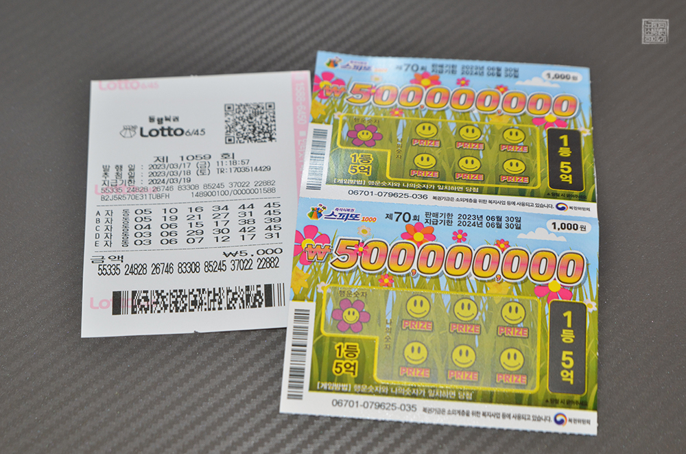 나는 행운복권방에서 로또 자동 5천 원과 함께 지난주에 이곳에서 구매해 당첨되었던 천 원짜리 자동 복권을 그대로 맞교환했다. 이번에 구매한 로또 제1059회 당첨 예상번호를 본다면 '03'이라는 숫자와 '06'이라는 숫자가 눈에 들어왔는데, 개인적으로 D 자동과 E 자동에서 볼 수 있는 두 개의 번호 조합이 꽤 나쁘지 않은 느낌이 들었다.