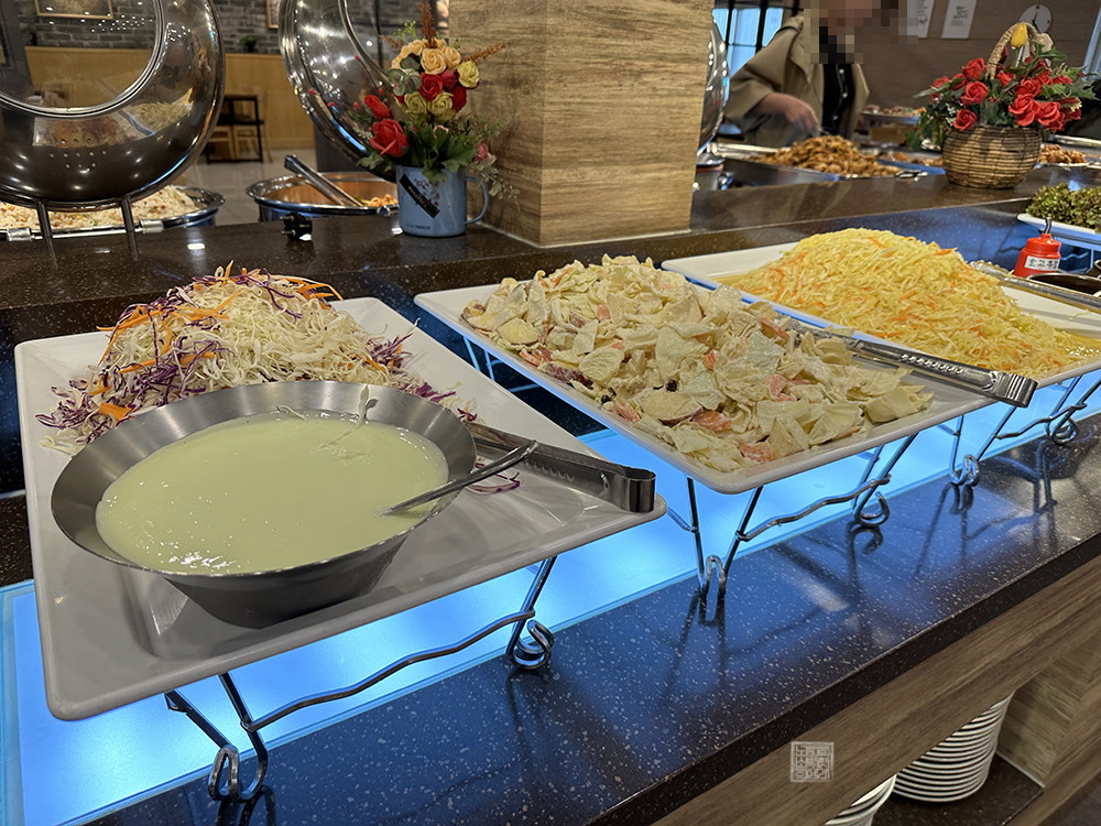 하지만 사람들의 호불호가 크게 나누어지는 몇 메뉴를 비롯해 솔직히 말해서 뷔페에서 손을 잘 대지 않는 샐러드 같은 건 조금 방치될 수밖에 없었다. 그러니 이러한 뷔페를 이용하고자 한다면 사람들이 붐비는 시간을 이용하거나 피크 타임에서 살짝 벗어난 시간을 이용하는 것을 추천하고 싶다. 그렇게 해야 갓 조리된 음식을 만날 수 있다.