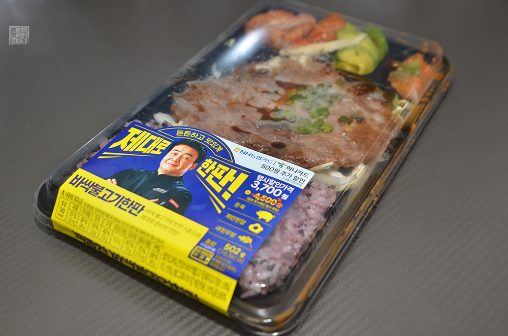 도시락은 바싹 불고기 한판이라는 이름답게 불고기로 뭉쳐진 고기 한 덩어리를 메인으로 해서 계란프라이가 올려진 밥과 함께 두부튀김, 볶음김치, 삶은 애호박, 어묵, 양파와 양배추 골고루 구성되어 있었다. 솔직히 말해서 어느 식당을 가서 먹더라도 정가 4,500원으로 이 정도의 찬과 밥을 먹기 어려운 시대라 편의점 도시락이 인기인 듯했다.