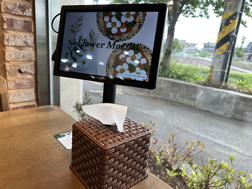 음식을 주문하는 방법은 각 테이블에 설치되어 있는 태블릿 PC로 가능하다. 점심때 가게를 찾는다면 여러 메뉴를 비교적 저렴하게 먹어볼 수 있는 런치세트가 있기 때문에 선택하는 일이 수월했는데, 런치세트를 선택하더라도 내부에서 피자는 어떤 피자를 하고 파스타는 어떤 파스타를 할지 등을 정해야 하기 때문에 다소 고민이 필요했다.