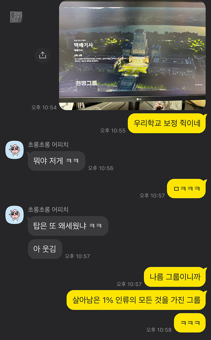 지금도 연락을 주고받는 친구 한 명에게 이 소식을 전하면서 넷플릭스에서 보던 장면을 찍어서 카카오톡으로 공유를 해서 짧게 이야기를 나누었다. 아마 나는 모교가 <택배기사> 촬영지로 나왔기 때문에 조금 더 애정 어린 시선을 가지고 드라마를 볼 수 있지 않었다고 생각한다. 괜스레 시간을 내어서 오랜만에 학교를 찾아가 보고 싶었다.