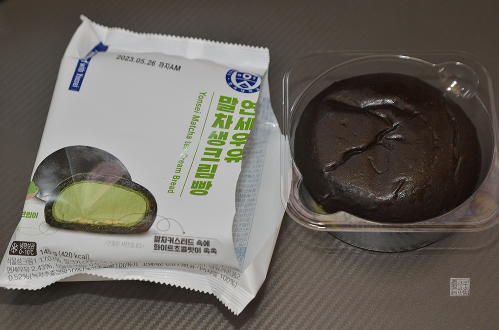 나는 연세우유 말차 생크림빵을 두 개 구매해서 한 개는 집으로 돌아왔을 때 곧바로 유튜브 채널에 업로드할 작정으로 영상을 찍으면서 먹었고, 한 개는 냉장고에 넣어뒀다가 익일 아침으로 연세우유 말차 생크림빵을 먹었다. 위 사진에서 볼 수 있는 건 냉장고에 하루 넣어 뒀다가 먹은 연세우유 말차 생크림빵의 모습임을 알 수 있도록 하자.