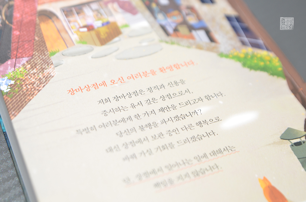 그것도 평범한 사람이 아니라 자신을 사랑하는 사람. <비가 오면 열리는 상점>의 마지막 장을 본다면 세린은 상당한 위험에 놓이게 되지만, 그녀를 도와준 것은 그녀가 장마 상점에서 인연을 맺은 새로운 친구들이었다. 이를 통해 세린은 자신이 행복해지기 위해서 돈보다 더 중요한 것은 사람이라는 걸 깨닫는데… 마지막 장면이 꽤 좋았다.