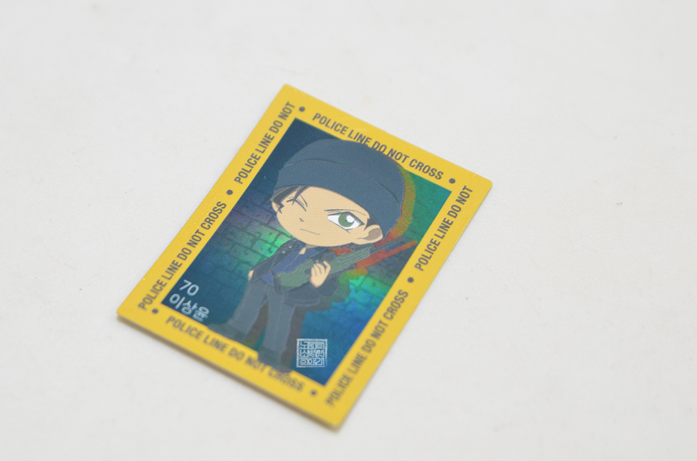 그리고 CU 편의점에서 콜라보 상품으로 판매 중인 명탐정 코난 상품을 구매한다면 총 76종의 스티커 중 하나를 랜덤으로 받아볼 수 있다. 모두 각 포장 용기에 들어가 있기 때문에 사전에 어떤 스티커가 들어가 있는지 확인은 불가능한데, 내가 구매한 3개의 제품에서는 아카이 슈(이상윤), 미츠히코(세모), 신이치(남도일) 세 사람이 나왔다.