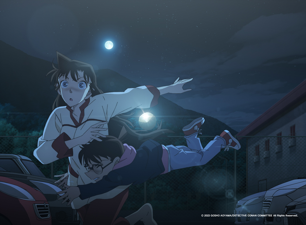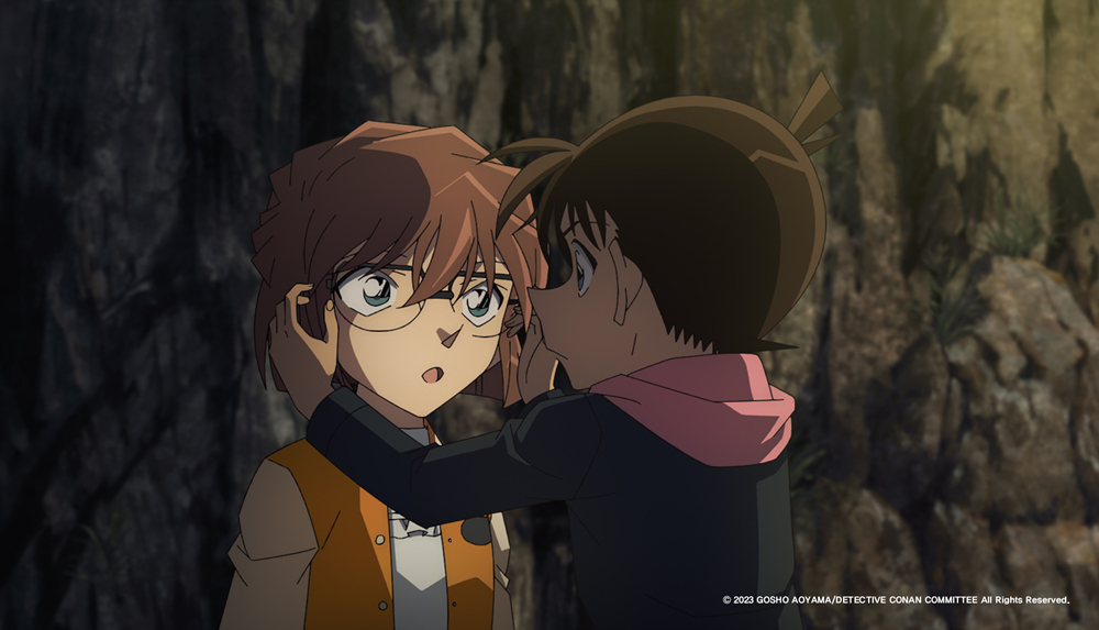 위 사진에서 볼 수 있는 모습은 코난이 "이 안경은 박사 님이 주신 첫 번째 안경이야."라고 말하며 검은 조직 때문에 불안해하는 하이바라를 안심시키면서 자신의 안경을 씌워주는 모습이다. 하지만 하이바라는 당일밤 숙소에 잠입한 워커와 이번 극장판에서 새롭게 등장한 RUM의 수하인 핑거에게 납치를 당하면서 절체절명의 위기에 놓인다.