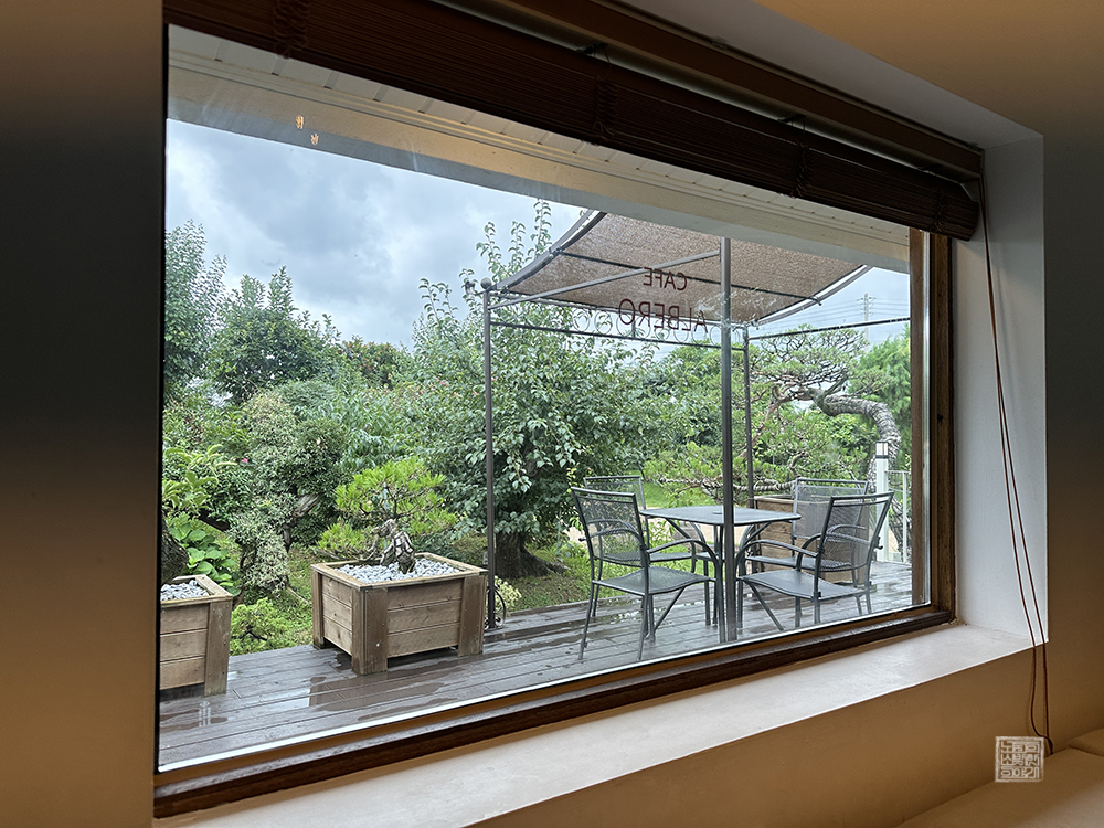 카페에 도착했을 당시 비가 내리기 시작했기 때문에 바깥을 제대로 둘러볼 수는 없었다. 하지만 정원이 잘 가꾸어져 있다 보니 야외 테이블도 적지 않게 마련되어 있는 모습을 볼 수 있었는데, 너무 더운 여름이 아니라 적당히 야외 테이블에서 차 한 잔 하기 좋은 봄과 가을쯤에 카페 알베로를 찾는다면 더 좋은 시간을 보낼 수 있을 것으로 보였다.