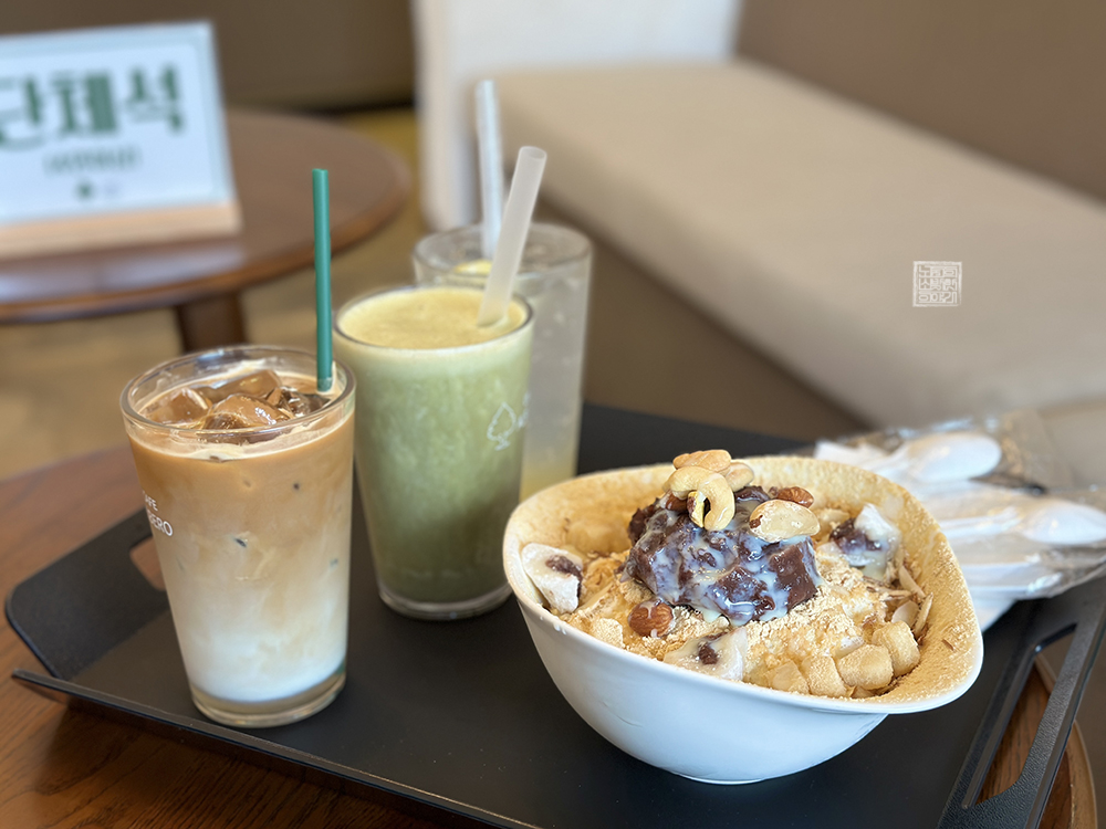 설빙에서 판매하는 팥인절미설빙이 9,900원에 판매되는 걸 생각한다면 부담스러운 건 사실이지만, 카페에서 좋은 자리에 앉아 잠시 휴식을 취하는 자릿세라고 생각한다면 나쁘지 않다. 우리 일행은 당시 4명이었기 때문에 4명 이상이 이용할 수 있는 단체석에 자리가 생겨서 이용할 수 있었는데, 이곳에서 휴식을 취하는 건 좋은 시간이었다.