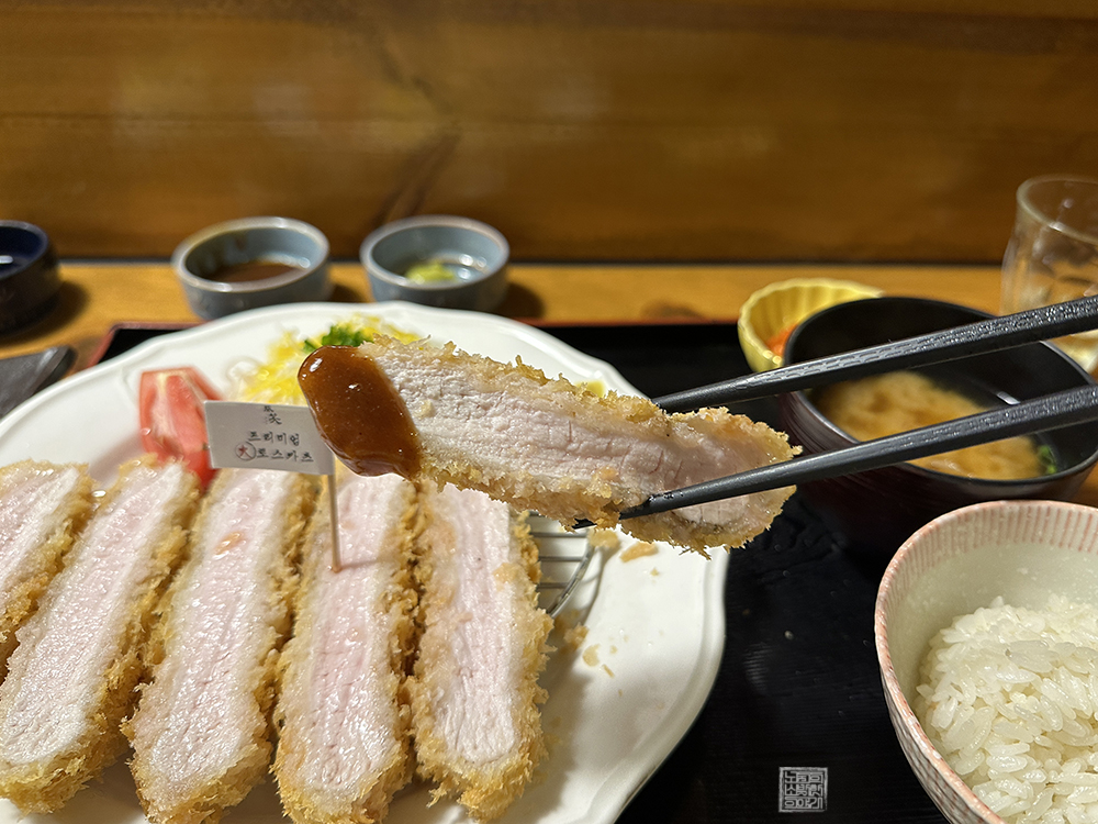 돈가스에 함께 먹을 수 있는 소스와 와사비 같은 레몬코쇼와 소금 등은 테이블 위에 마련되어 있기 때문에 함께 나오는 소스 종자 그릇에 덜어서 먹으면 된다. 돈가스 소스를 덜 수 있는 도구는 돈가스 소스를 팍팍 덜 수 있는 도구가 아니라 살짝 짜증이 나기는 해도 천천히 덜어서 먹도록 하자. 이것도 전부 톤쇼우에서 볼 수 있는 특징이었다.