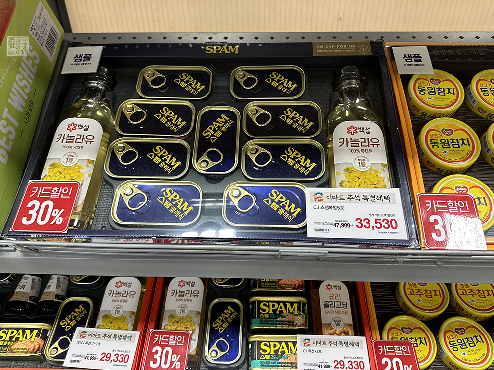 이제 2주 앞으로 다가온 추석을 맞아 마트에서는 추석 선물 세트를 사전 예약 판매를 본격적으로 시작한 모습을 볼 수 있게 되었다. 내가 늘 장을 보고 있는 이마트 김해점을 본다면 매장 입구로 들어간다면 한쪽에 선물 세트가 진열된 모습을 볼 수 있다. 사전 예약 기간 동안 구매한다면 기본가보다 훨씬 더 저렴하게 상품을 구매할 수 있다.