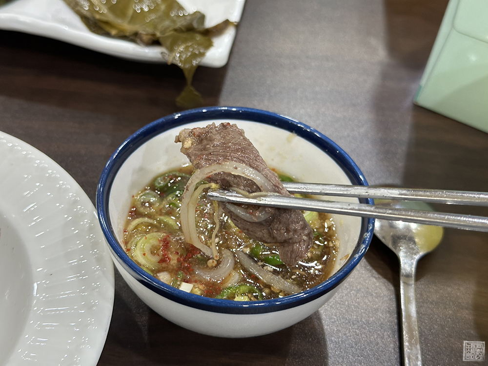 제대로 익은 편백찜은 함께 들어 있는 숙주나물과 고기만 먹어도 맛있지만, 가야 편백 샤브샤브 무한리필 점이 자랑하는 특제 소스에 찍어 먹으면 정말 맛있게 먹을 수 있다. 솔직히 나는 육수에 여러 재료를 넣어서 샤브샤브를 해서 먹지 않고, 이 편백찜만 하나 더 주문해서 공깃밥과 함께 밥 한 끼를 먹고 싶을 정도로 편백찜이 맛있었다.