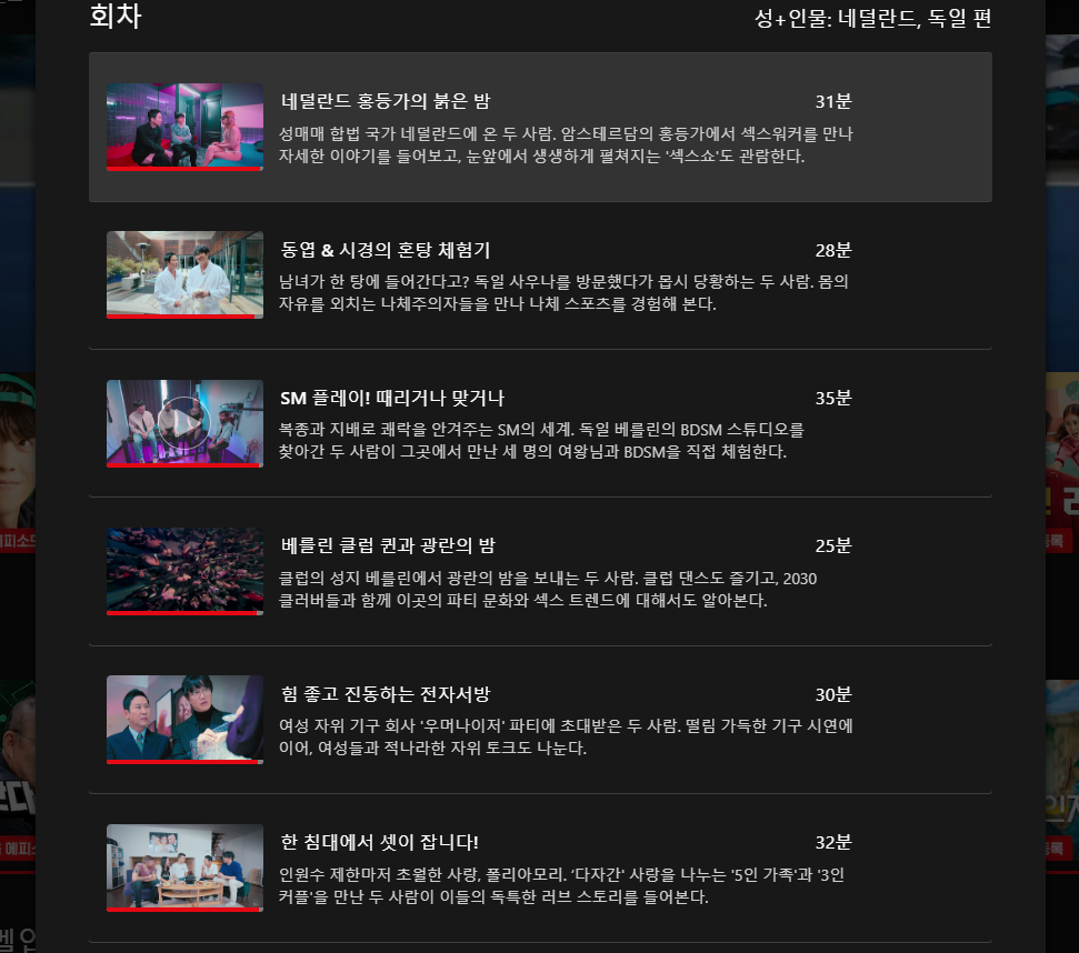 <성인물 시즌3 네덜란드 편>에서는 그 배경을 명확히 알 수는 없었지만, 그곳에서 일을 하거나 혹은 취재를 하는 사람들을 통해서 성매매를 주업으로 삼는 사람들의 이야기를 들을 수 있었다. 개인적으로 '안젤라'라는 이름의 섹스워커가 "쉽게 말하자면 돈을 벌기 위해 제 몸을 다른 방식으로 사용하는 것뿐이에요."라는 말이 멋졌다.