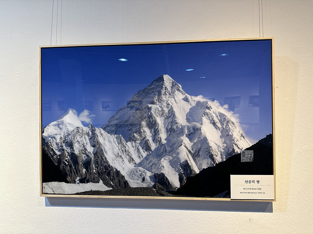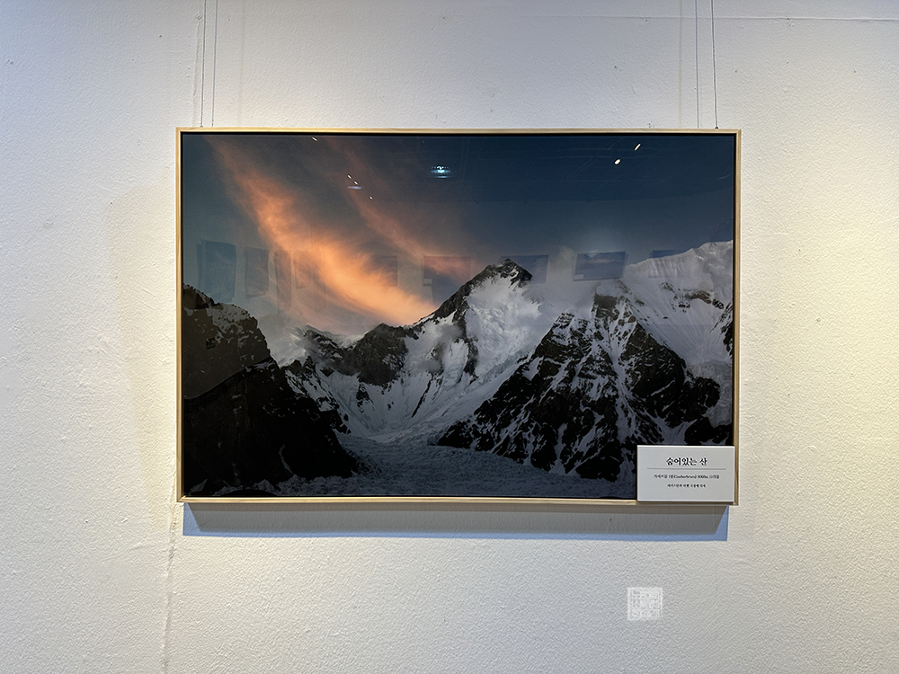 전시회가 열리는 김해 문화의 전당 윤슬미술관 제1전시실로 간다면 벽을 둘러 싼 히말라야의 모습을 볼 수 있다. 눈이 좀처럼 내리지 않는 김해에서는 보기 어려운 설산이기도 하고, 하얗게 눈이 덮인 히말라야의 모습은 깊이 감탄할 수 있는 위용을 자랑했다. 사진이 목적은 아니었겠지만… 저기를 도대체 어떻게 올라갈 수 있었던 걸까?