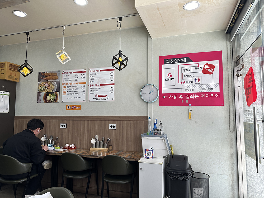 돈까스를 먹다가 매운 소스를 받을 수 있을지 물어보려다 그냥 돈까스를 먹기로 했다. 나는 E 성향이 거의 없는 극 I 성향이다 보니 메뉴판에 '주문시 미리 말씀해주세요.'라고 적혀 있는 것을 돈까스를 먹는 도중에 언급하는 건 쉽지 않았다. 만약 추후 돈딱을 재차 찾게 된다면 그때는 꼭 매운 소스를 함께 받아서 돈까스를 먹어볼 생각이다.