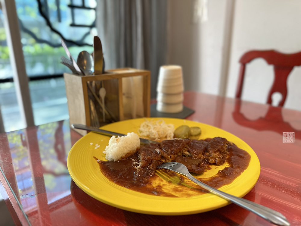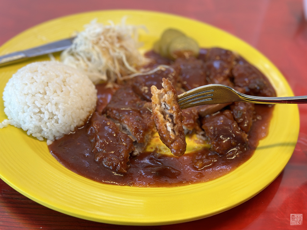 그리고 매운 돈까스를 주문했기 때문에 일반 경양식 돈까스 소스보다 살짝 매운 편이기는 해도 그렇게 맵지 않아서 편하게 먹을 수 있었다. 만약 땀을 흘릴 정도로 매운맛을 원하는 사람에게는 매운 돈까스의 매운맛이 부족할 것으로 생각하지만, 깔끔한 매콤함을 원하는 사람에게 돈까스 공업사의 매운 돈까스는 딱 좋았다.